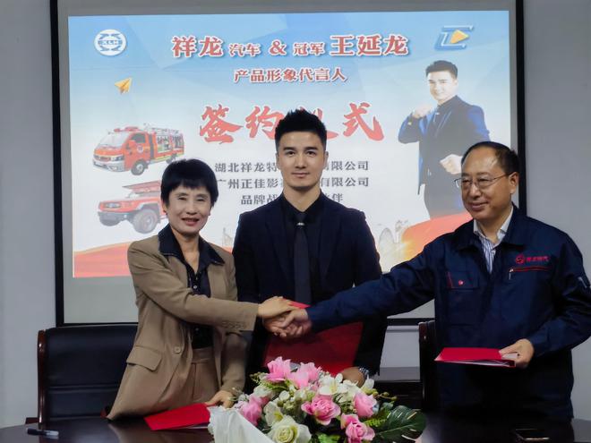 近日!武術(shù)世界冠軍王延龍(明星代言公司)與祥龍汽車簽約儀式在湖北十堰隆重舉行,湖北祥龍汽車公司董事長(zhǎng)王相林先生、廣州正佳影視制作有限公司總經(jīng)理林梅寶女士出席儀式。被譽(yù)為“中華戰(zhàn)龍”的王延龍正式成為祥龍汽車的形象代言人,湖北祥龍?zhí)胤N汽車有限公司與廣州正佳影視制作有限公司同時(shí)達(dá)成品牌戰(zhàn)略合作伙伴,開啟了兩家公司未來發(fā)展的新篇章。