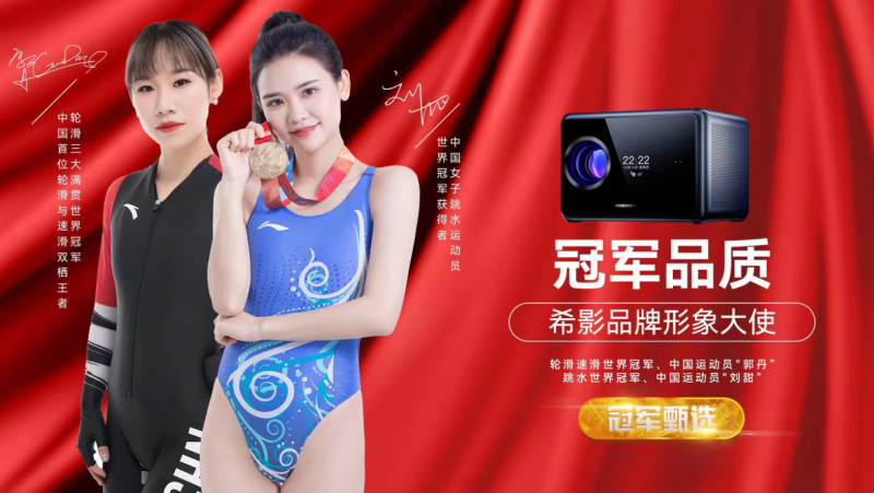 近日,國內知名智能投影品牌希影正式官宣跳水世界冠軍獲得者劉甜(明星代言公司)、輪滑速滑世界冠軍郭丹(冠軍明星代言公司)出任品牌形象大使。這是新銳智能投影品牌希影首次簽約形象代言人。